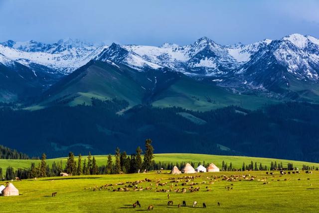 让我们来到天山山脉,天山,这座东西走向的山脉,犹如一条巨龙蜿蜒于新疆大地,天山的南北两侧,气候截然不同,形成了“一山有四季,十里不同天”的奇特景象,你可以看到雪山、草原、森林、沙漠等多种自然景观。